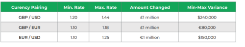 Below are rate predictions from major banks for 2026 and the possible impact on your budget. If you were exchanging £1 million for USD, the predictions carry a disparity of $240,000, and for EUR a disparity of €80,000. This large disparity between predictions shows how unreliable they can be.