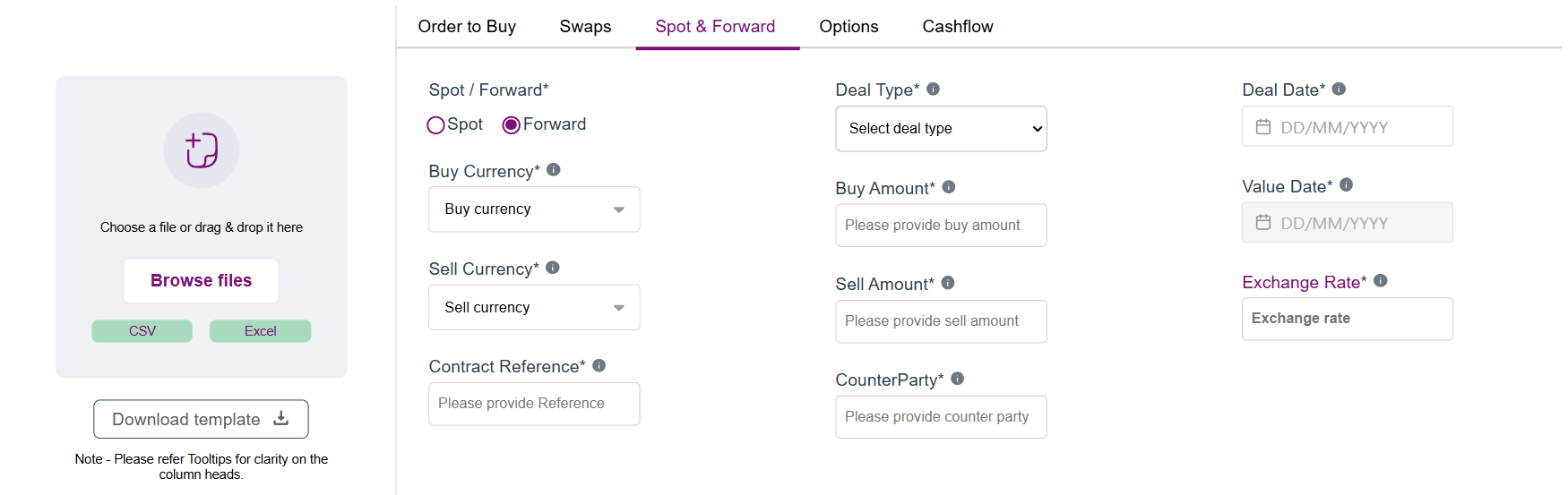 Manage complex contracts across different currency pairs and counterparties